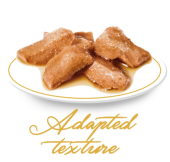 Thin slices in gravy. This wet diet is the perfect complement to the Maine Coon dry formula.